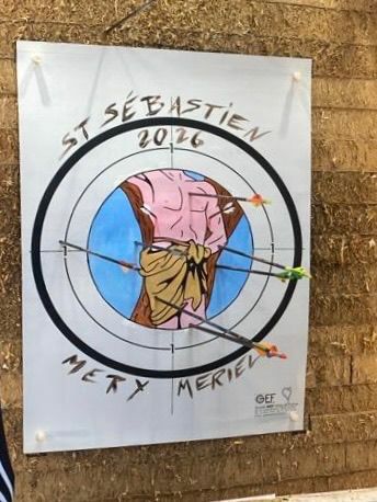Sera désigné comme Saint Sébastien de la Compagnie pour cette nouvelle année, celui ou celle dont la flèche se trouvera le plus près du sein gauche de Saint-Sébastien.